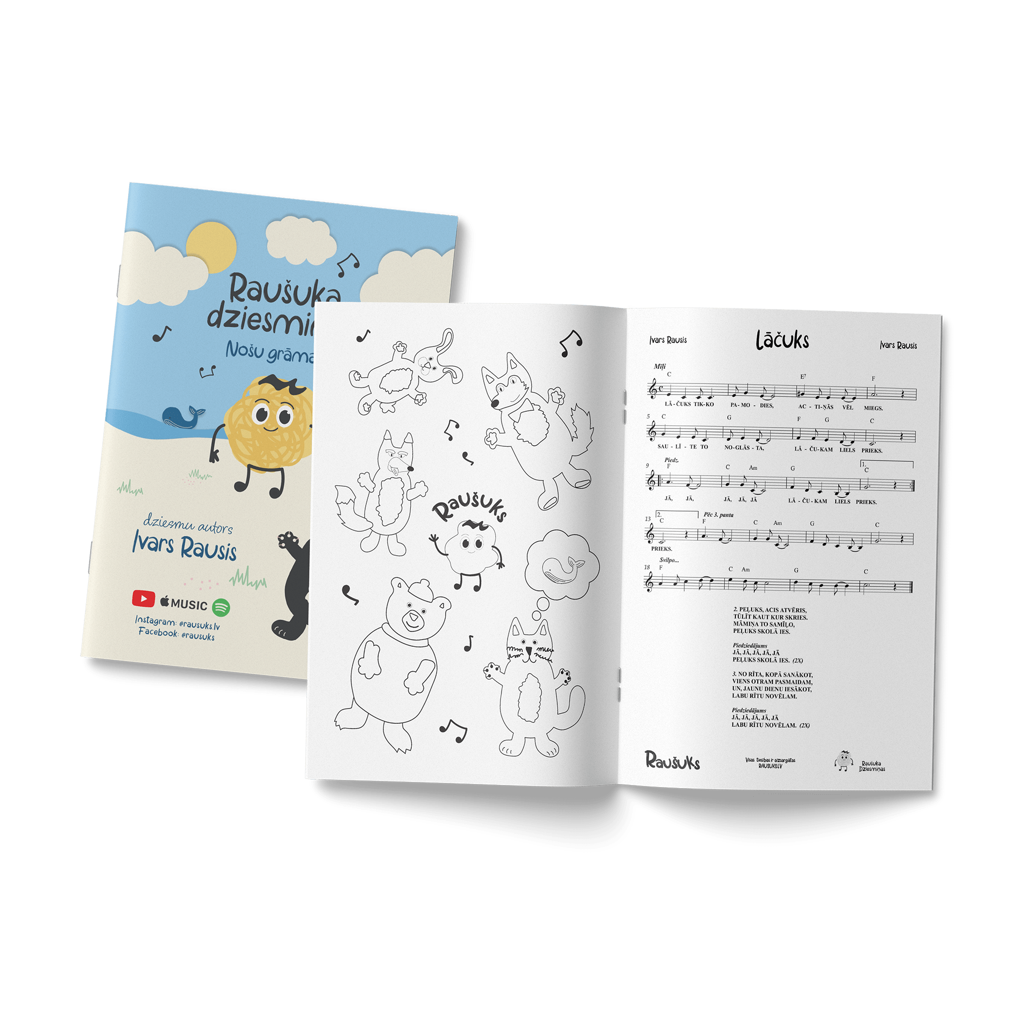 Albuma "Raušuka dziesmiņas" nošu grāmatā ir notis visām dziesmām, kuras ir iekļautas mūzikas albumā. Lai arī citi varētu pareizi dziedāt dziesmas un paši spēlēt pavadījumu. Vai arī dziedāt līdzi jau ar pieejamiem instrumentāliem pavadījumiem audio diska formātā vai visās populārajās online platformās.